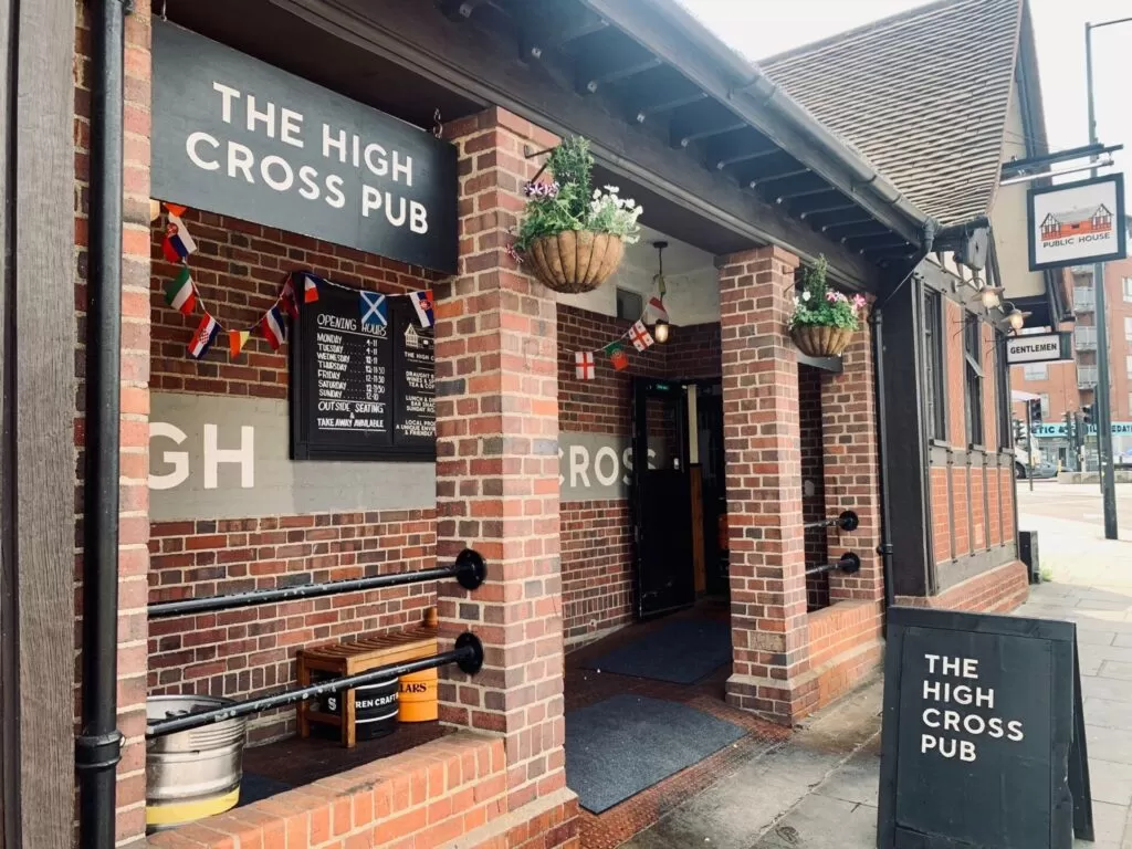 Since opening, The High Cross has become a surprise favorite among locals and tourists alike. Inside, you’ll find 10 beers on tap, with pints starting at £5.50, plus a menu featuring cheeseburgers and pies to enjoy while cheering on England.